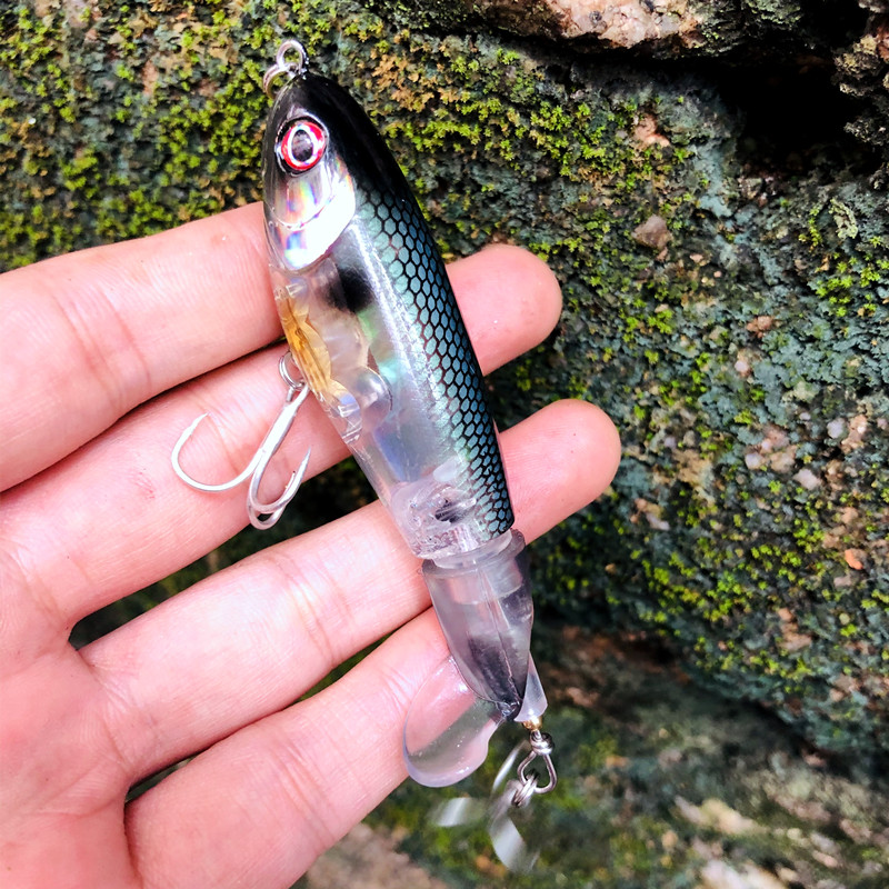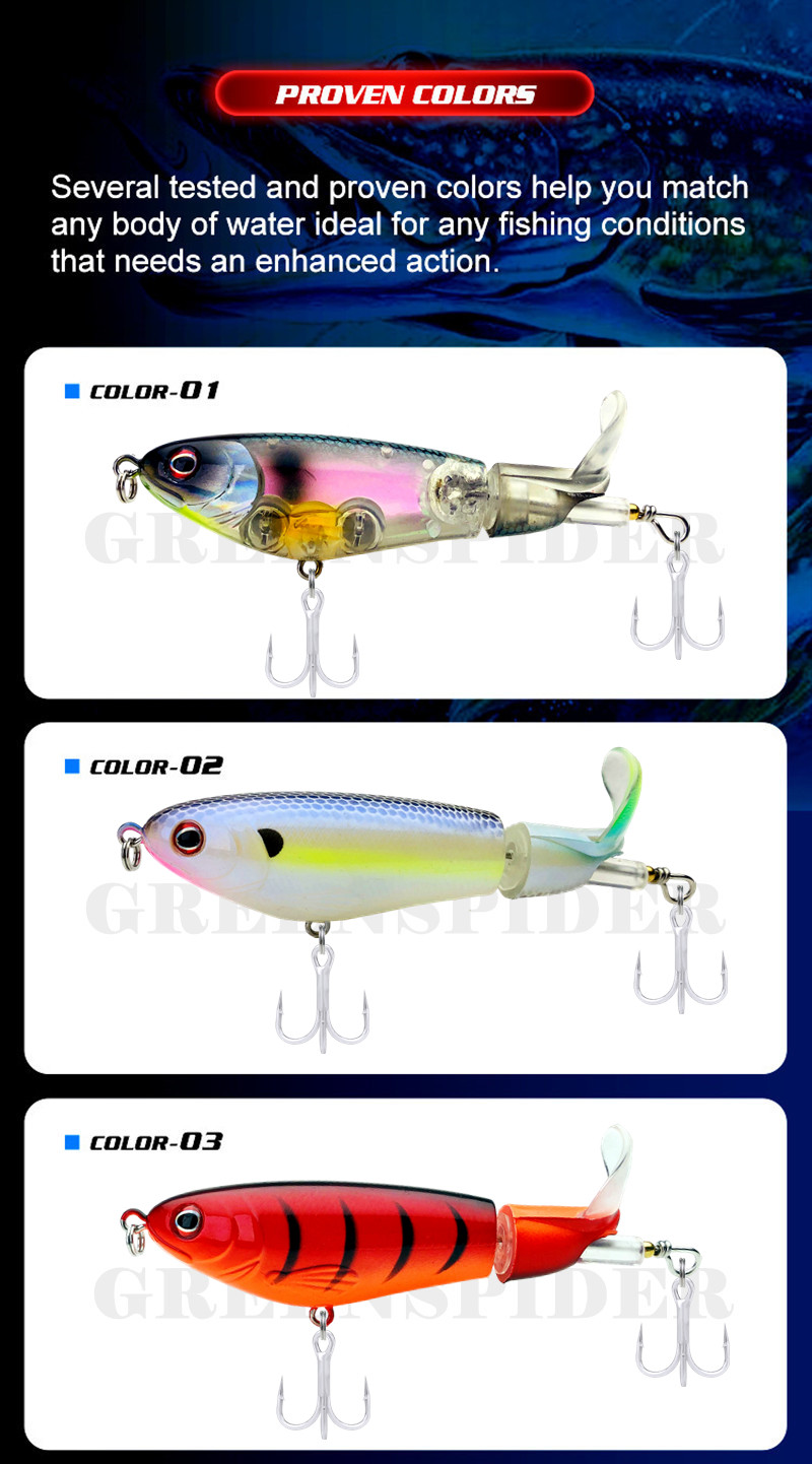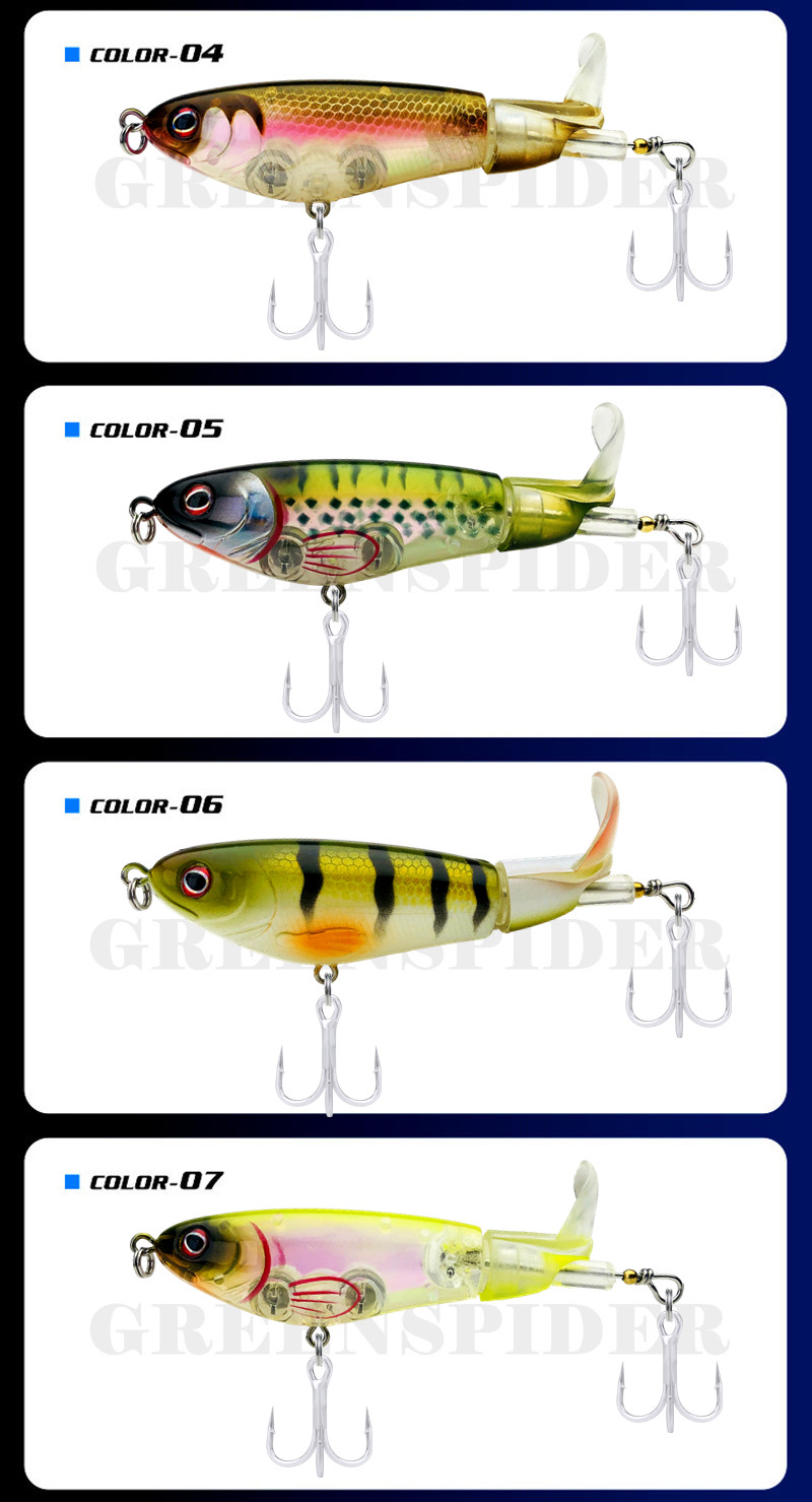 GREENSPIDER Pesca With Propeller Topwater Fishing Lures 97mm 14g Artificial Bait Hard Plopper Soft Rotating Tail Fishing Tackle