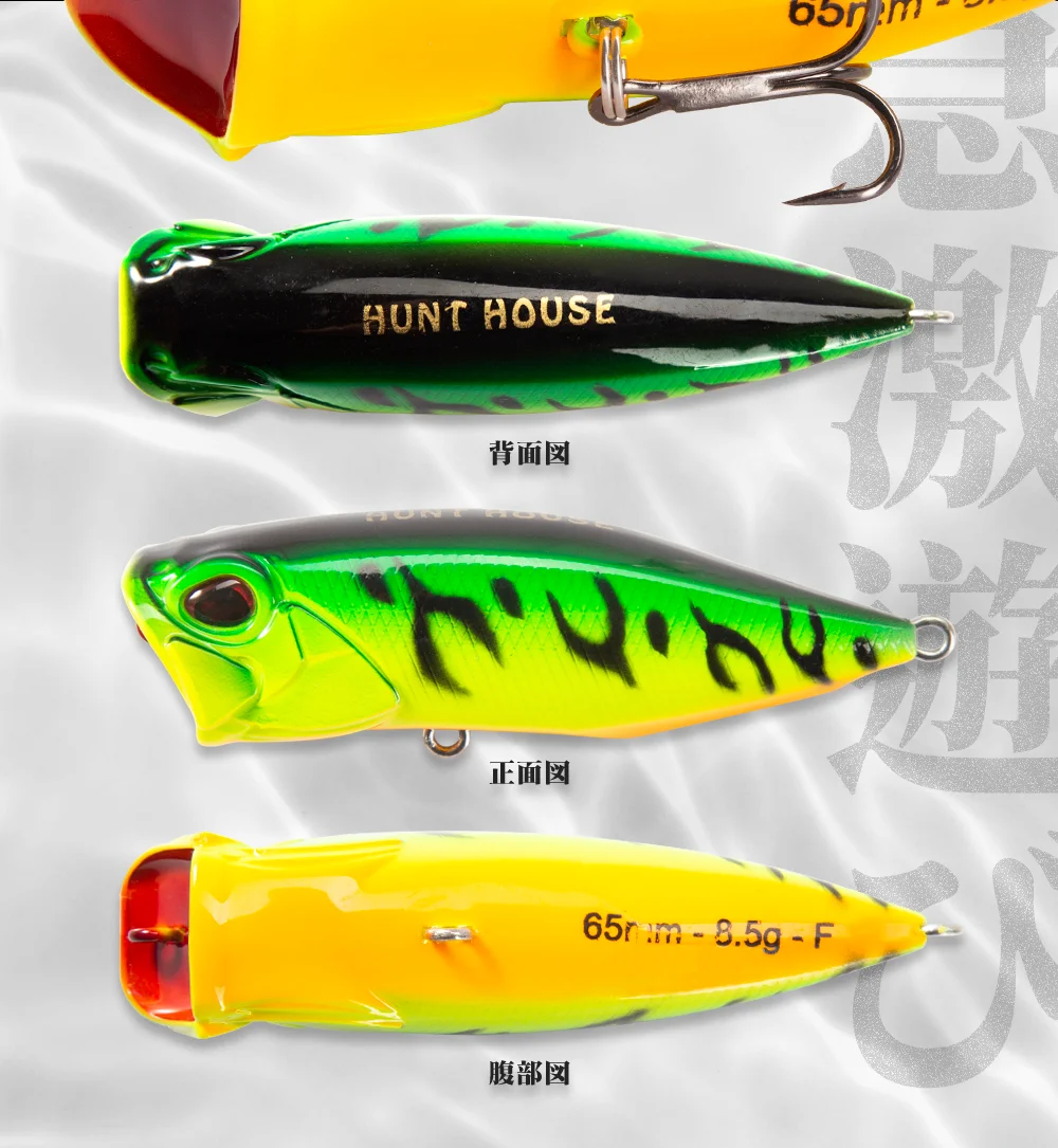 Hunthouse popper fishing lure 65mm 8.5g topwater poppers bait floating top water altwater pesca lures surface lures pealis fangpop 65