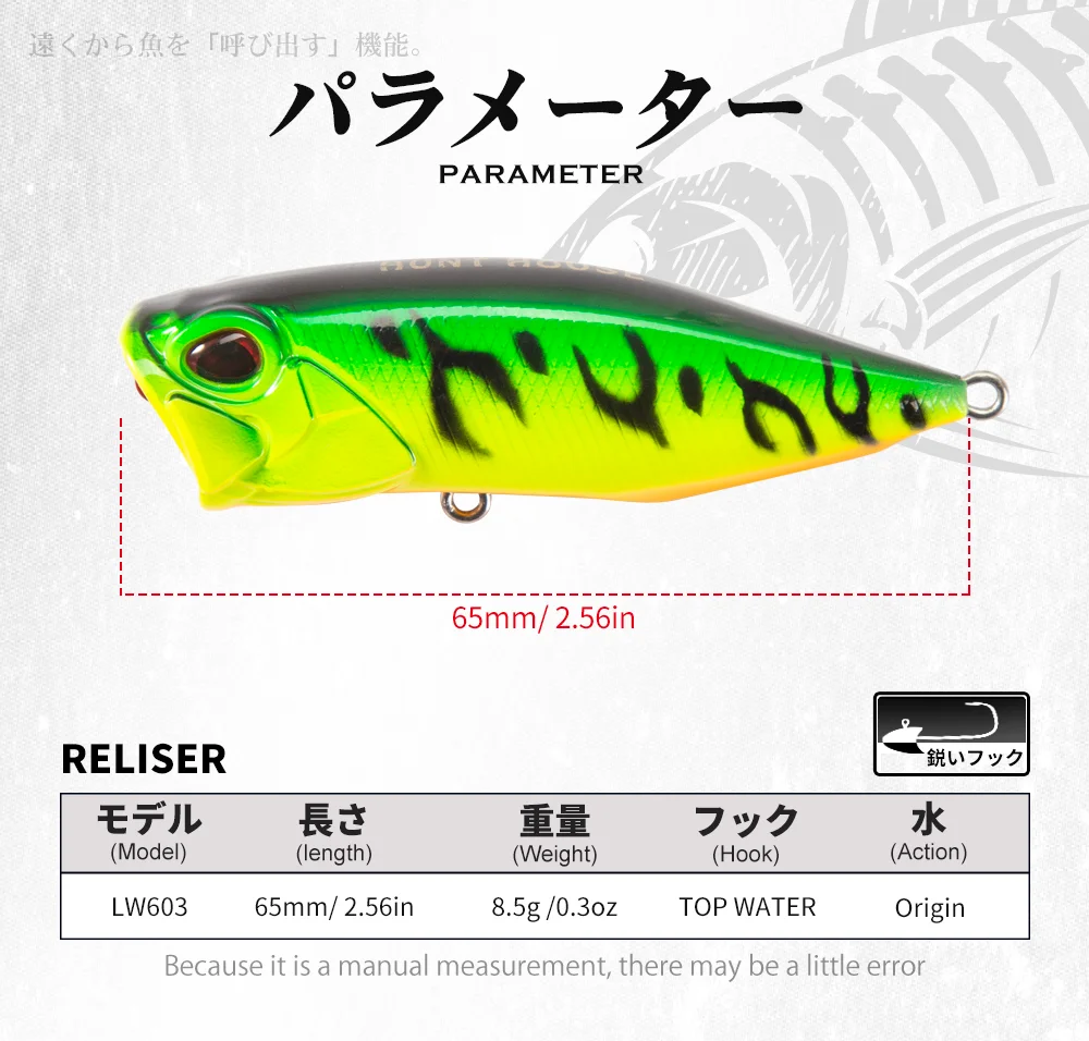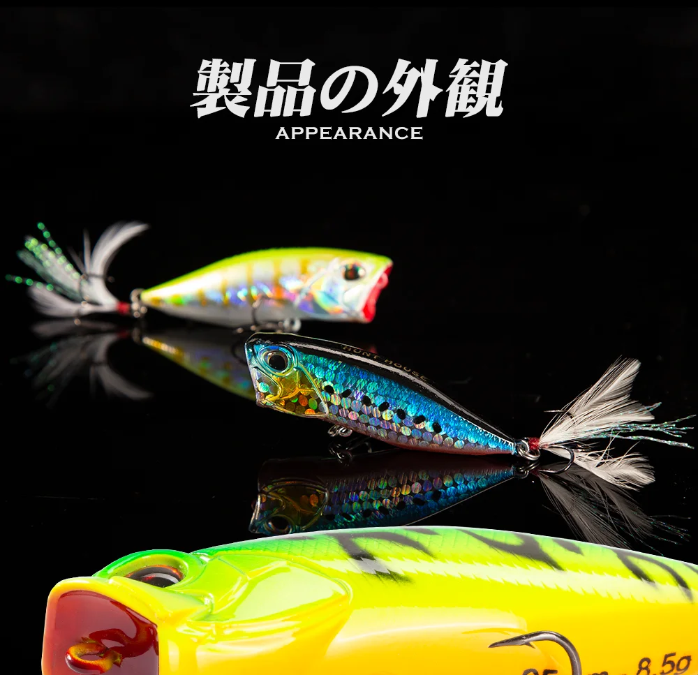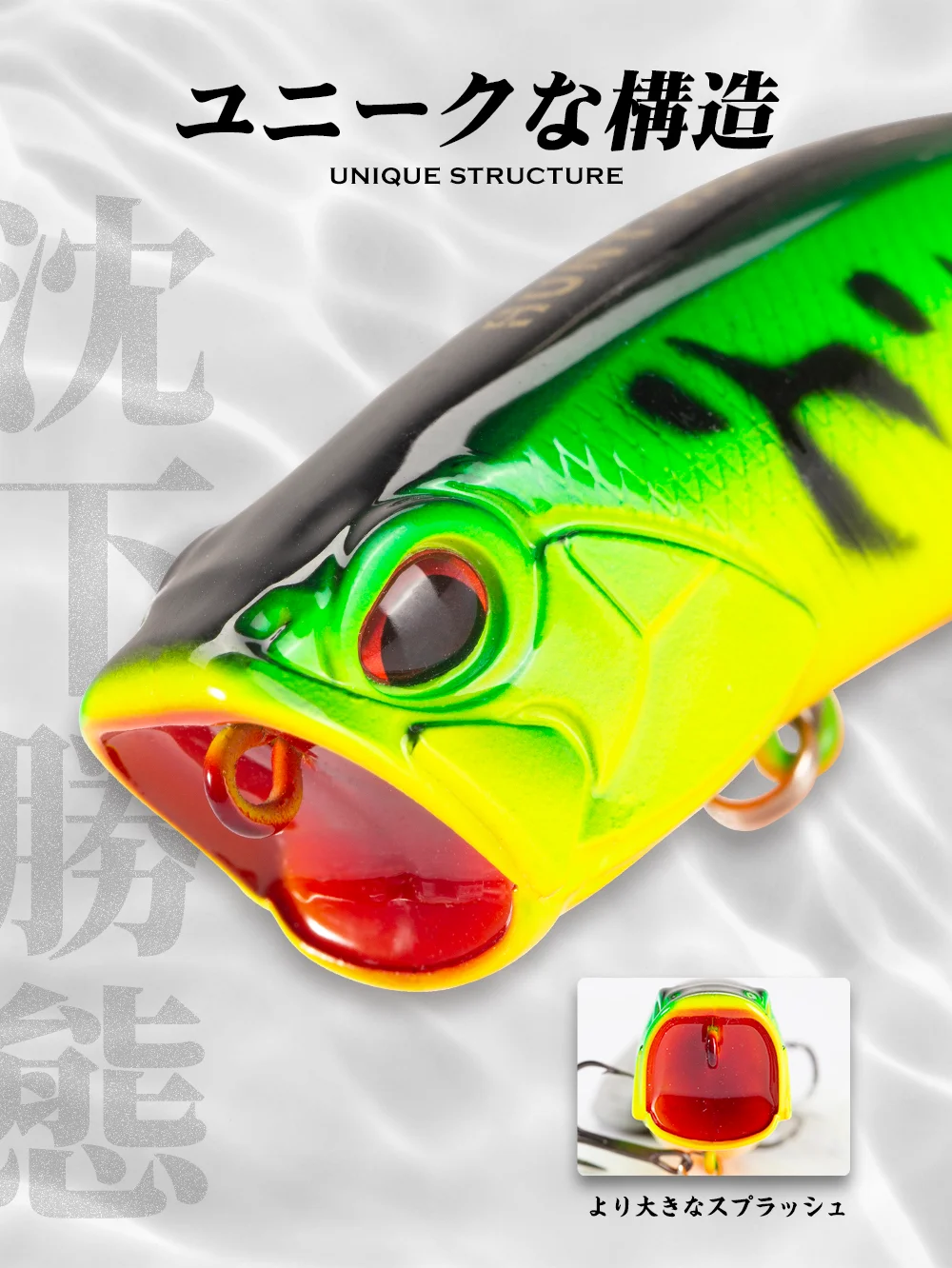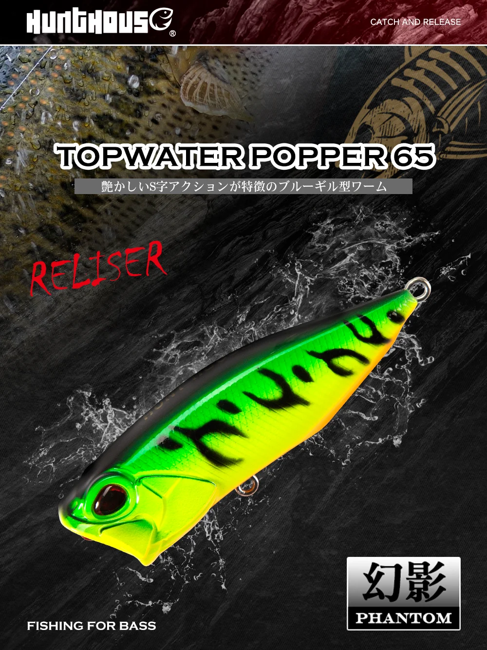Hunthouse Pealis Fangpop Popper Fishing Lure 65mm 8.5g Topwater Poppers Lure Floating Poper Bait for Fishing Bass Float Tackle