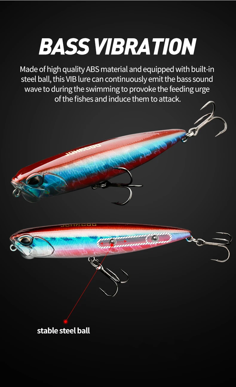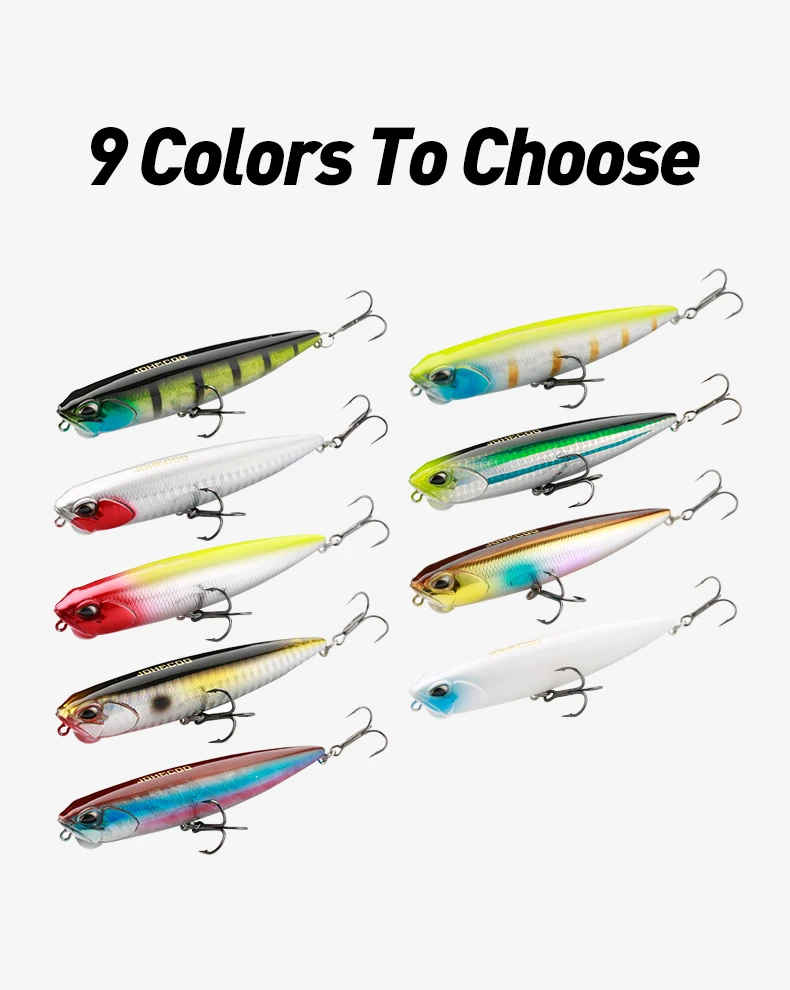 The popper baits possess precise weights within the tail section, delivers long, bullet-like casts even when fishing in windy conditions, makes walking the dog effortless and allows the lure to sit tail-down for a splashing, popping action that predator fish can't resist