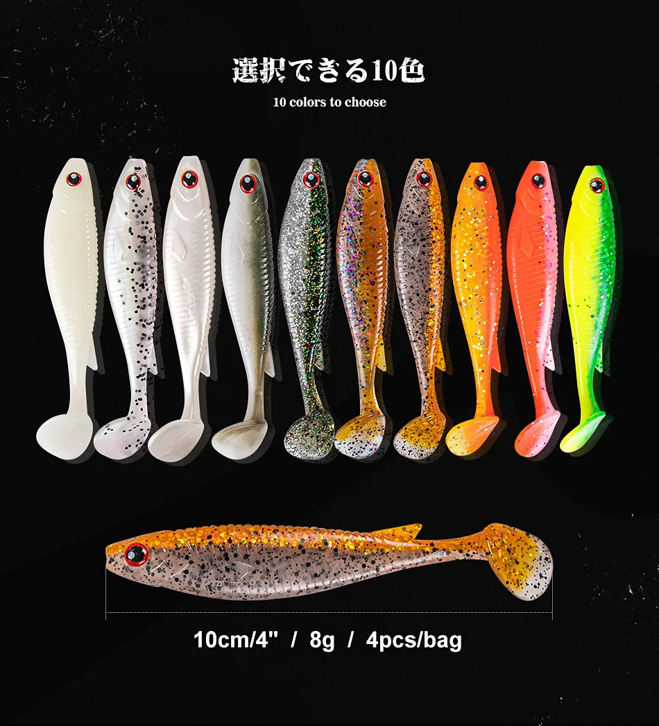 NOEBY Soft Bait 10cm 8g Fishing Lure 4pcs Paddle Tail Shad Swimbait Wobblers PVC Artificial Baits for Pike Bass Fishing Lures